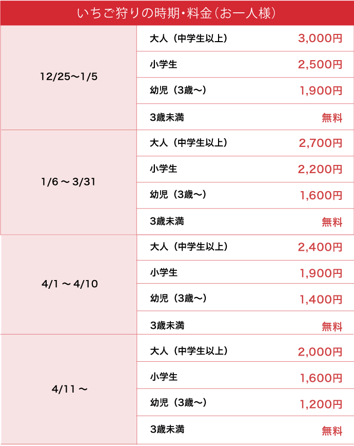 耳納山麓の地下水で育てられた新鮮なイチゴが5品種、食べ放題!多段式高設栽培なので立った状態でイチゴ狩りができ、清潔なイチゴが食べられます! 60分食べ放題!